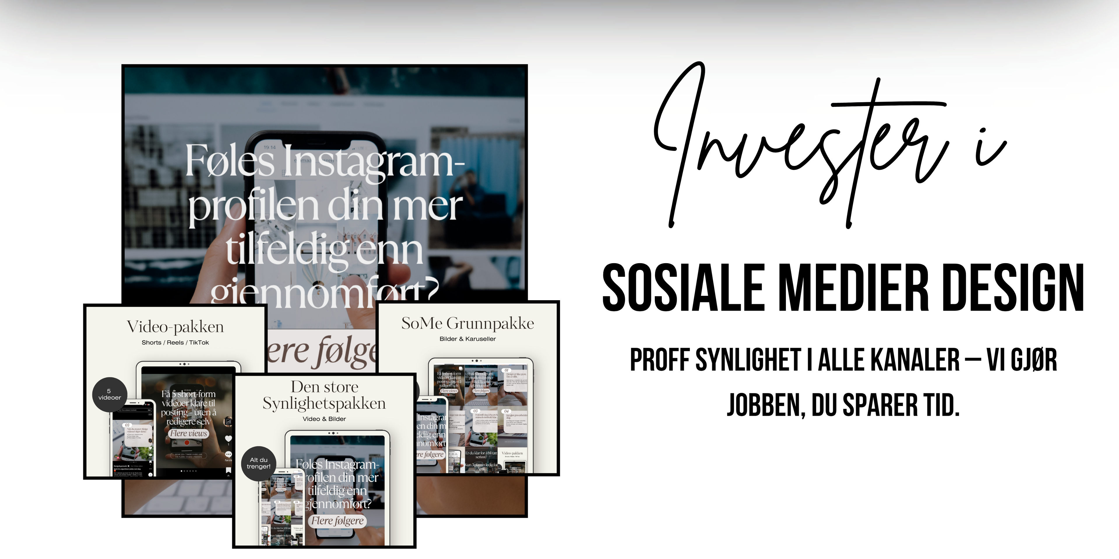 Vi leverer helhetlig design som forener strategi og estetikk – fra kampanjemateriell og annonser til gjennomført innhold for sosiale medier.Vi designer ikke bare for øyet, men for gjenkjennelighet og tillit. Ved å bygge bro mellom bedriftens identitet og målgruppens behov, skaper vi visuelle uttrykk som konverterer. Hos oss får du ferdige, profesjonelle filer som er klare til å løfte din markedsføring umiddelbart.