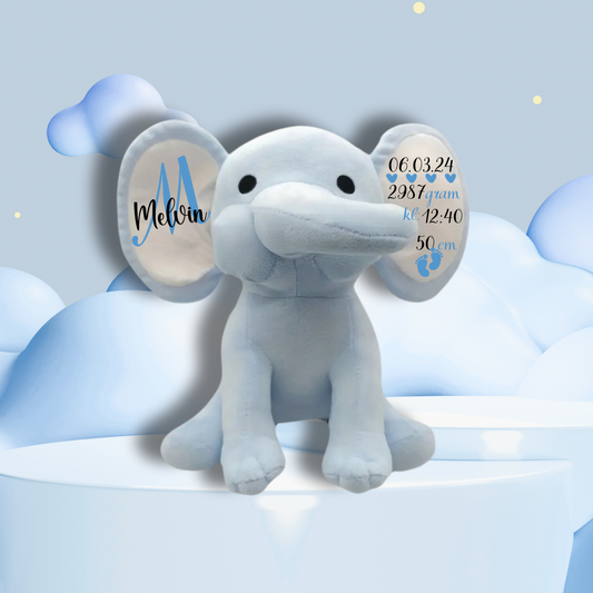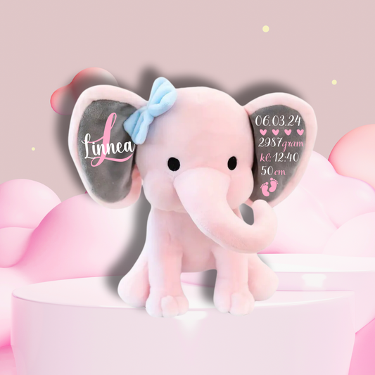 Personlig elefantbamse med fødselsinformasjon - rosa