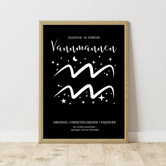Stjernetegn plakat – Svart, minimalistisk design