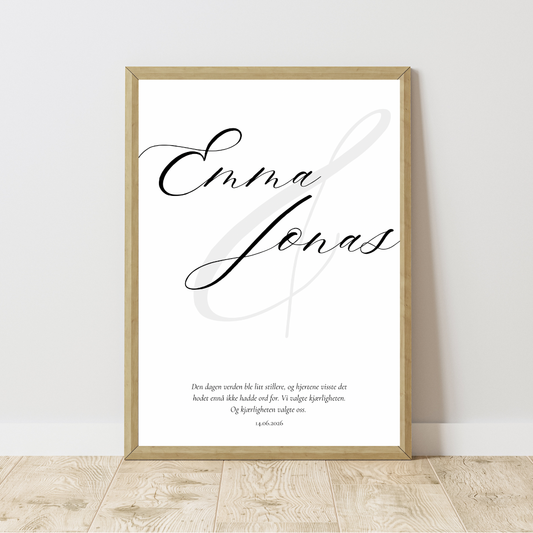 Personlig bryllupsplakat med navn og dato | Elegant navneplakat 50×70 cm | Bryllupsgave