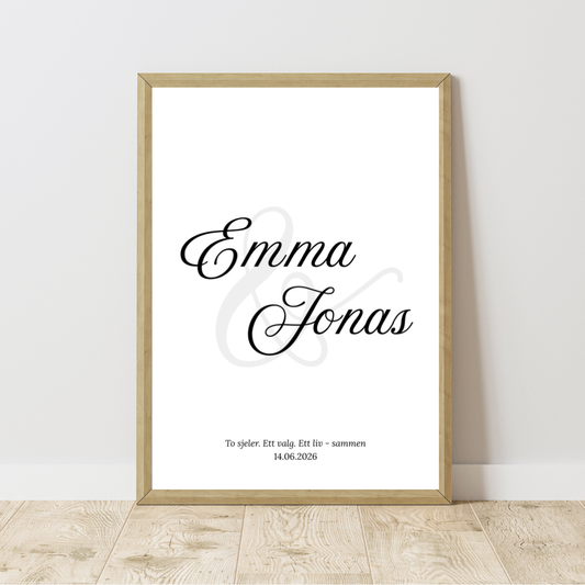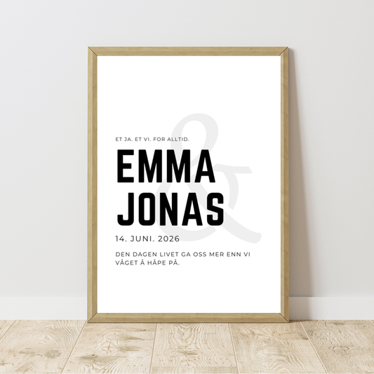 Personlig bryllupsplakat med navn og dato | Moderne navneplakat 50×70 cm | Bryllupsgave