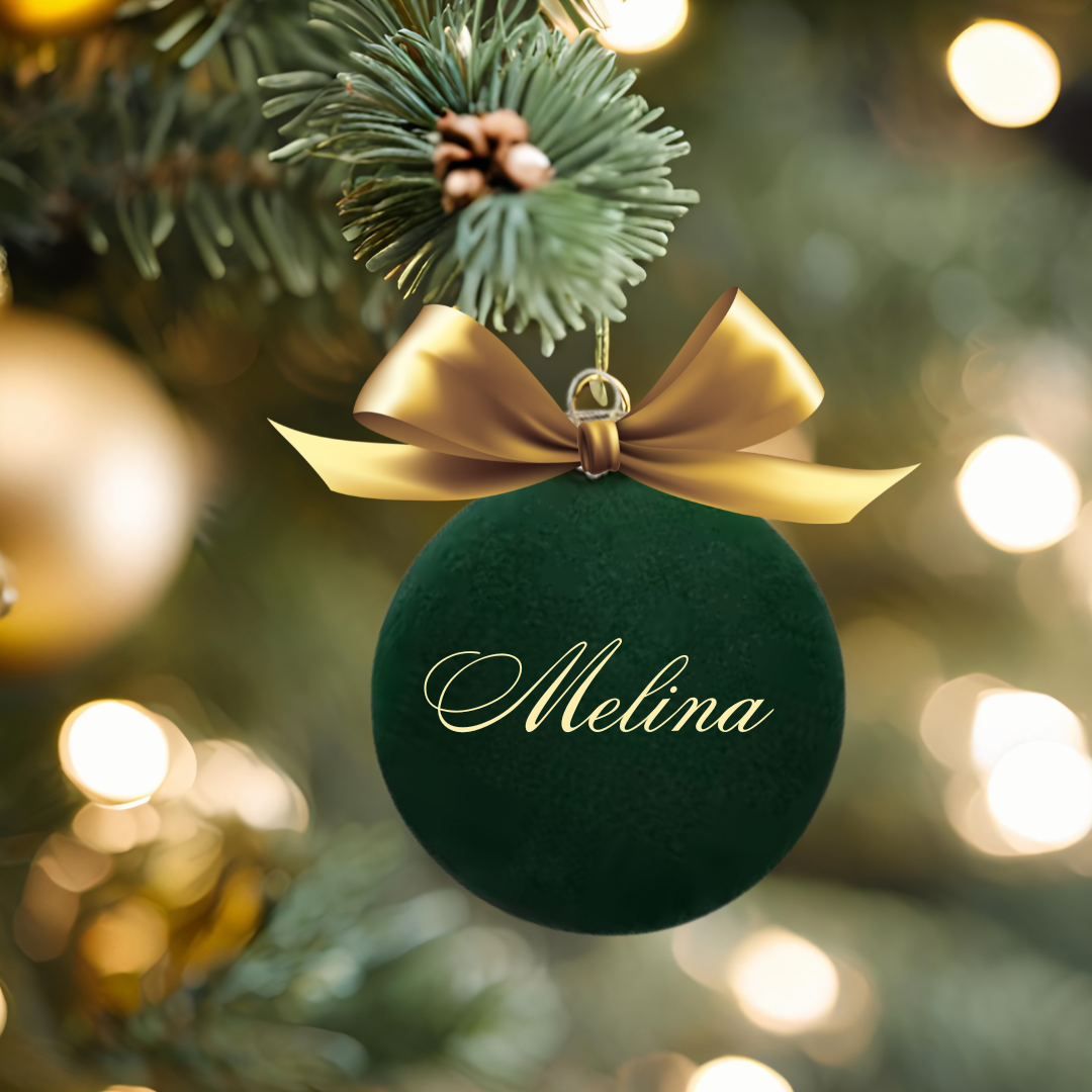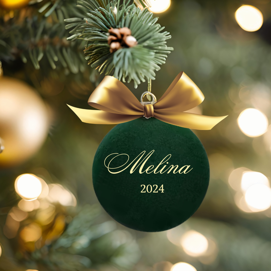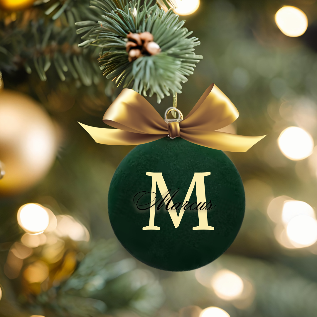 Gjør juletreet ekstra spesielt i år med en nydelig personlig julekule i myk fløyel.